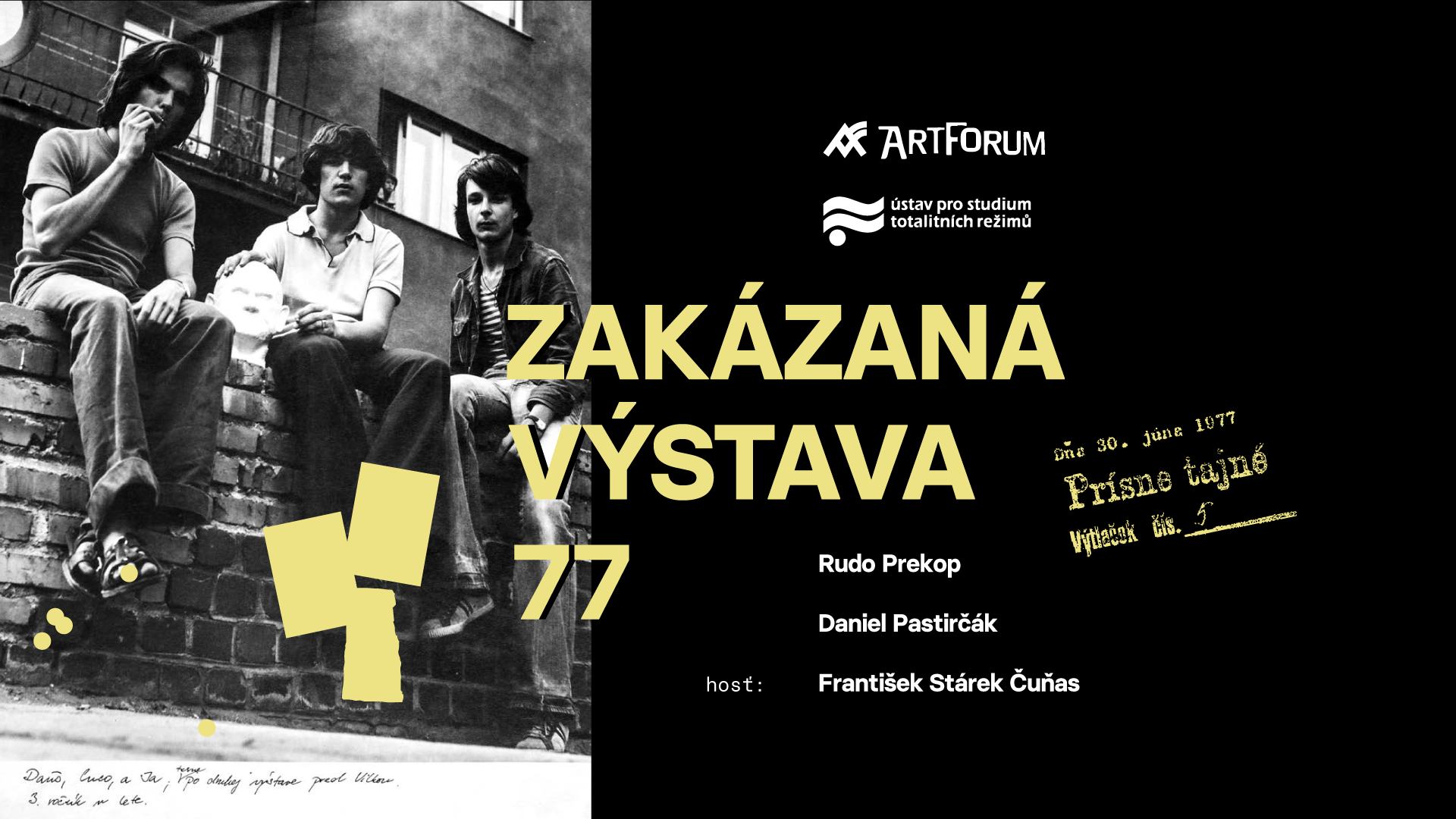Skupina studentů Střední umělecké průmyslové školy v Košicích na jaře 1977 uspořádala velkou skupinovou multižánrovou výstavu. Poezie, fotografie, kresba, malba, socha, plastika tvořily dohromady neobyčejně intenzivní proud svobodné kreativity. Euforická atmosféra po zahájeni výstavy nedlouho po zveřejnění Charty 77 však měla velmi krátké trvaní. Na základě udaní informátora s krycím jménem Ekonom byla výstava po 24 hodinách příslušníky košické StB uzavřena. Události, které následovaly, se výrazně propsaly do životních osudů všech zúčastněných. Nonkonformní výstava se totiž stala trnem v oku tehdejšímu režimu: byla košickou StB uzavřena a její iniciátoři politicky perzekvováni. Události z roku 1977 znovu ožívají v knize Zakázaná výstava 77 dokumentech, rozhovorech a vzpomínkách zúčastněných.